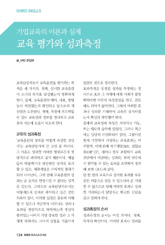 교육담당자로서 교육훈련을 평가하는 목 않았던 것으로 생각된다.