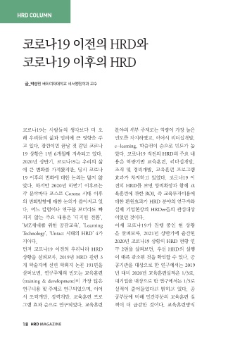 19 상황은 1년 6개월째 지속되고 있다. 았다. 코로나19 직전의 HRD의 주요 내