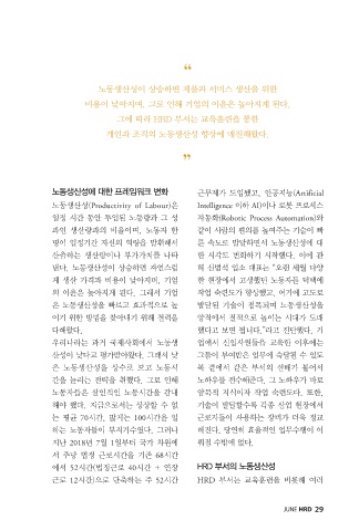 에서 52시간(법정근로 40시간 + 연장 HRD 부서의 노동생산성