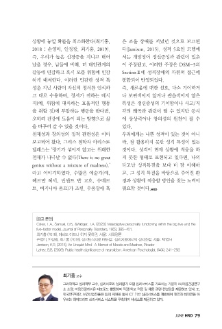 2018 ; 손영미, 안정광, 최기홍, 2019). 다(Jamison, 2015). 성격 5요인 모델에