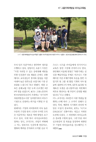 ▲ KT 그룹인재개발실 리더십교육팀은 맞춤형 리더육성을 통해 새로운 비즈니스 발굴과 그룹 내 협업 활성화에 공헌하고자 한다.