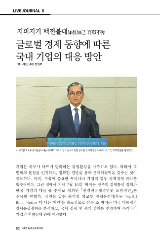 필수적이다. 그런 점에서 지난 7월 16일 ‘바이든 정부의 경제통상 정책과