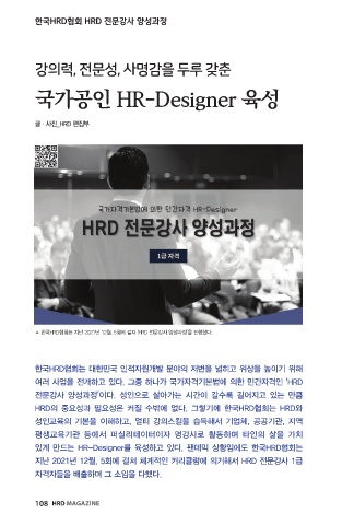 있게 만드는 HR-Designer를 육성하고 있다. 팬데믹 상황임에도 한국HRD협회는