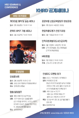 교육신청/문의 www.hrda.or.kr 02)525-9933