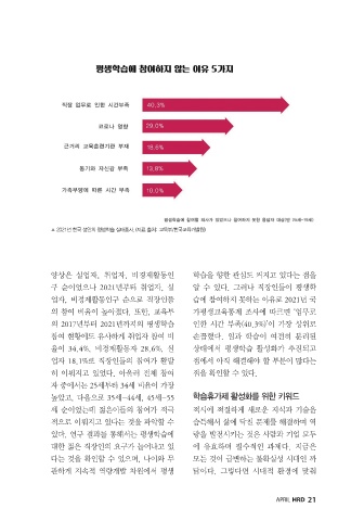 의 2017년부터 2021년까지의 평생학습 인한 시간 부족(40.3%)’이 가장 상위로