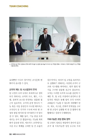되기 위해서는 조직의 구조, 제도, 시스 해한 후, 팀 코칭 과정에서 유연하고 중