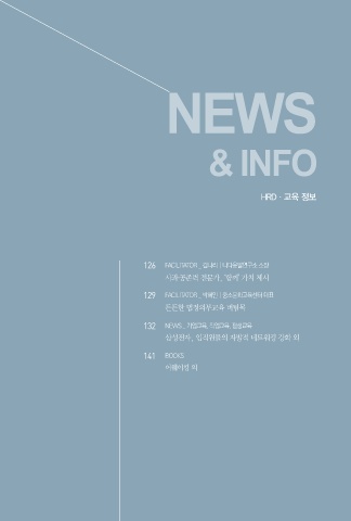 HRD·교육 정보 126 FACILITATOR _ 김나리|나다운말연구소 소장 사과·공존력 전문가, ‘함께’ 가치 제시 129 FACILITATOR _ 박혜인|중소문화교육센터 대표 든든한 법정의무교육 버팀목 132 NEWS _ 기업교육, 직업교육, 평생교육 삼성전자, 임직원들의 자발적 네트워킹 강화 외 141 BOOKS 어웨이킹 외