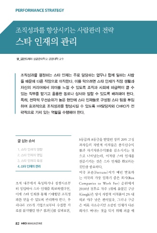 조직성과를 결정하는 스타 인재는 주로 담당하는 업무나 함께 일하는 사람
