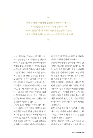 도망치듯 사랑을 찾아 결혼을 한다. 아 게도 어린 시절의 불행을 반복한다. 왜